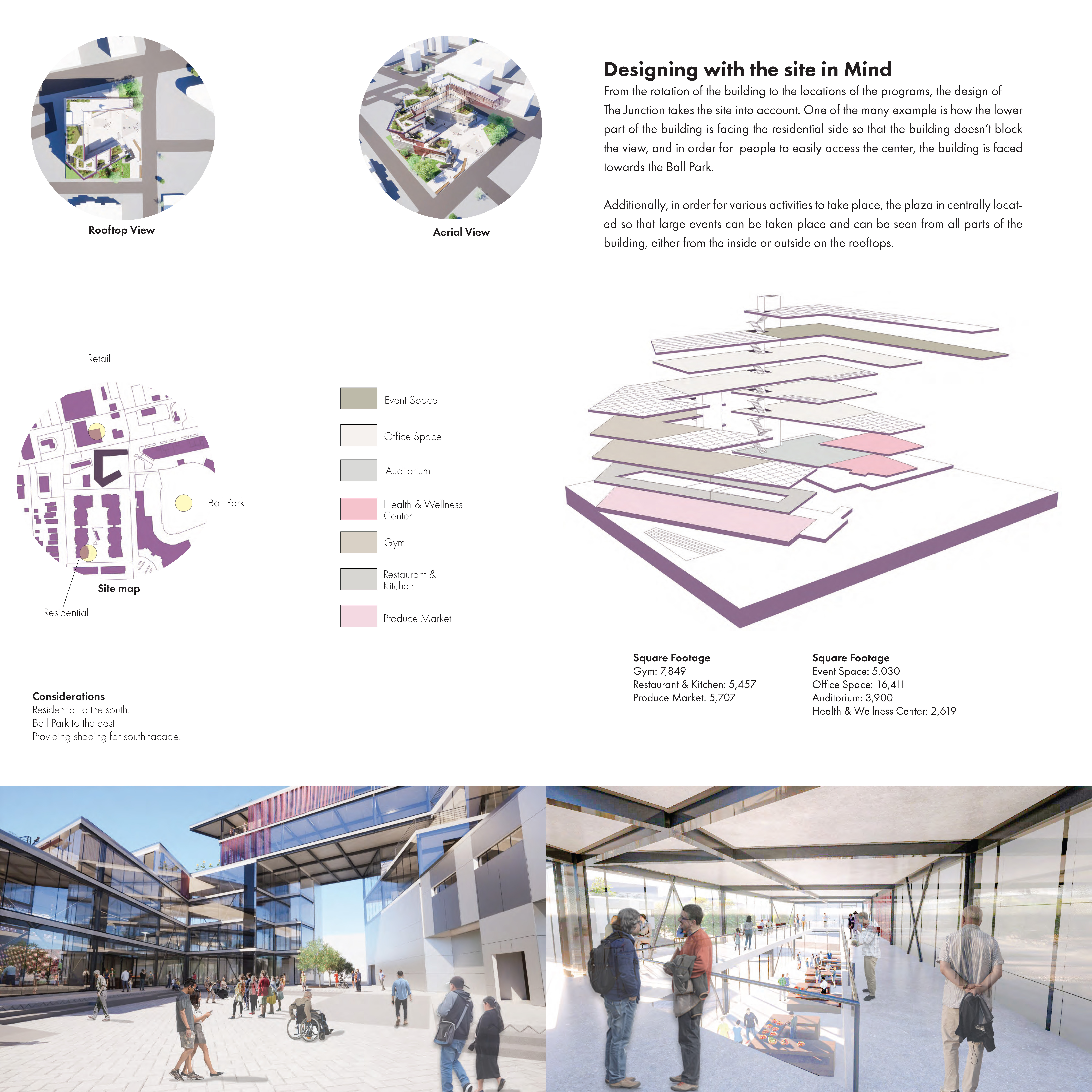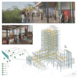The Tin Cap Center is a mixed use development that aspires to further catalyze existing energies in Fort Wayne and clearly establish it as a regional model for positive development and growth. The center will house a food hub with local produce, rentable office space, a restaurant, event space, an auditorium, and health and wellness center. The designs will also include an exterior plaza space. Students are challenged to imagine the role architecture can and should play in the evolving Civic condition of Fort Wayne, and propose unique, appropriate and dynamic architectural solutions.