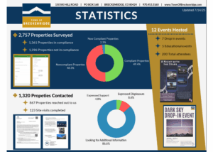 I spent my first month conducting a GIS survey of all the exterior lighting on private property in Breckenridge. This enabled me to become familiar with the community’s geography and the updated exterior lighting ordinance. We next issued notices to all private property owners who were identified as being out of compliance with the regulations.