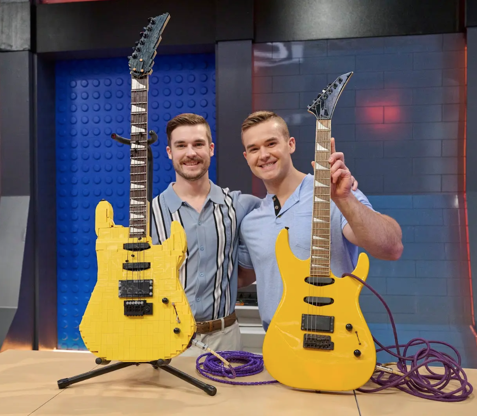 Ben holds the brick-built (LEFT), and Michael holds the real guitar (RIGHT). Photo provided by FOX.