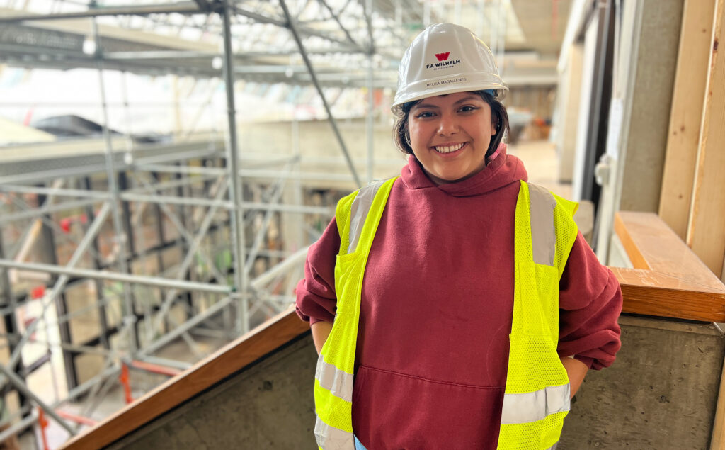 She graduated in Spring 2025 with a degree in Construction Management (CM) and a minor in Business Administration. Only a month later, she stepped into her full-time role as a Project Engineer with F.A. Wilhelm Construction Co.—and found herself back on campus, contributing to the renovation of the very college that shaped her.