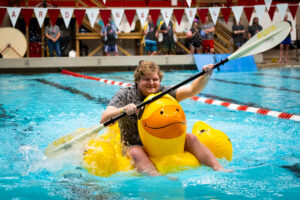 | Dash & Splash | Participants from various colleges and departments take their turn paddling down the pool on a giant inflatable duck. The three fastest participants will win Challenge Funds to the fund of their choice. Join the crowd and cheer on your favorites! | 12:00 p.m. – 1:00 p.m. | Lewellen Pool |