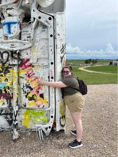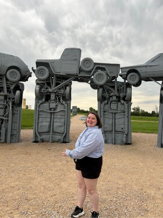 One of the most significant locations in the book is Carhenge, a replica of Stonehenge made from vintage cars. Carhenge became the site of a major battle and ritual scene involving witchcraft. Visiting it in person completely changed how she understood both the location and the state. The landscape, which was initially flat in her novel, transformed into a lush, hilly background. “You can only capture so much from Google images,” she said. “Actually going to the site location was life-changing for me.”