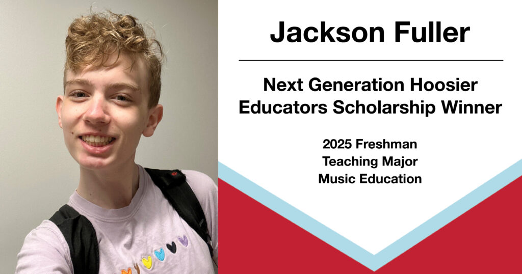 As a Next Generation Hoosier Educators Scholarship recipient, Jackson Fuller closed out his first semester with a strong sense of purpose. Rooted in music, inspired by mentorship, and supported by a community that believes in him, he is taking his first steps toward a career in education, one where he hopes to create the same welcoming, challenging spaces that once shaped him.